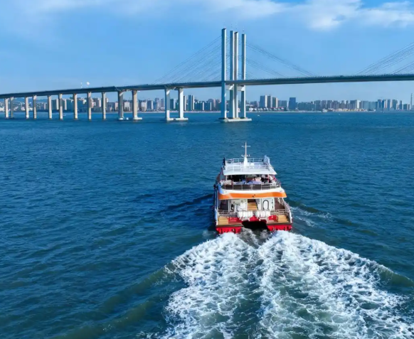 10月30日,青岛胶州湾北岸迎来历史性一刻——红岛东大洋码头正式启用,“海上穿越大桥”航线同步开启首航,这既标志着“海上看青岛”旅游品牌首次延伸至城阳区,更为胶州湾北岸文旅产业的资源整合与区域协同发展注入了崭新活力。码头航线双启用:“海上看青岛”迈出北拓关键一步上午10时,红岛东大洋码头启用暨“海上穿越大桥”航线首航仪式正式举行,相关政府部门领导、行业伙伴及媒体记者齐聚现场,共同见证这一意义非凡的时刻。与会领导共同推动启动轴,汽笛声悠扬响起,东大洋码头正式启用,“海上穿越大桥
